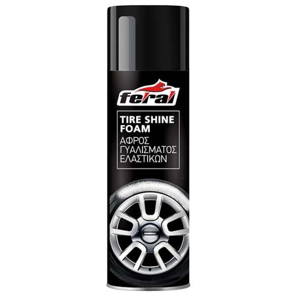 Ο αφρός γυαλίσματος ελαστικών Feral  είναι ένα προϊόν με μοναδική σύνθεση  που καθαρίζει, γυαλίζει και προστατεύει τα ελαστικά του αυτοκινήτου.Απομακρύνει εύκολα και γρήγορα  τις βρωμιές και στεγνώνει αμέσως, δίνοντας μοναδική λάμψη χωρίς να χρειάζεται επίμονο τρίψιμο.