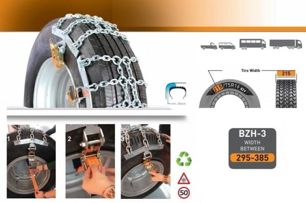 Αλυσίδα έκτακτης ανάγκης για μικρές αποστάσεις, με ιμάντα και κλείδωμα με ζώνη και τεντωτήρα που κάνουν την τοποθέτηση και την αφαίρεση ταχύτερες και απλούστερες, χωρίς μετακίνηση του οχήματος. Δεν καταστρέφει τις ζάντες.