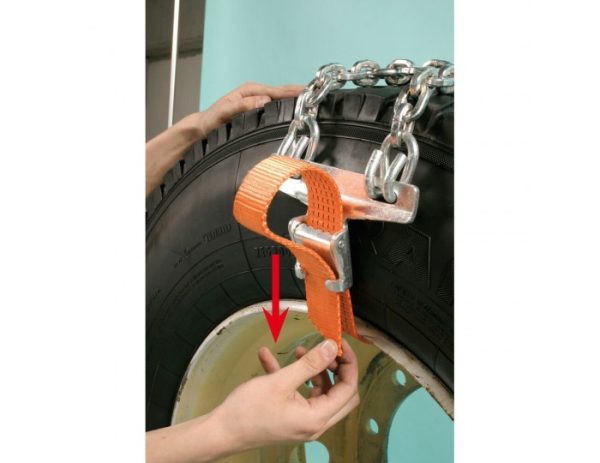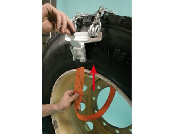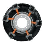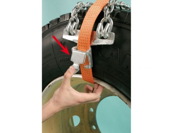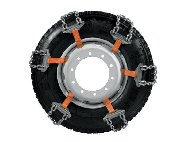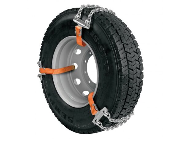 Διαθέτει 2 κάθετες σειρές και 2 οριζόντιες από αλυσίδα σε σχήμα “D” με ενισχυμένους σταυρωτούς συνδέσμους και ιμάντα δέσης με κλιπ (Quick fit belt system), που προσαρμόζεται εύκολα και γρήγορα πάνω στον τροχό.