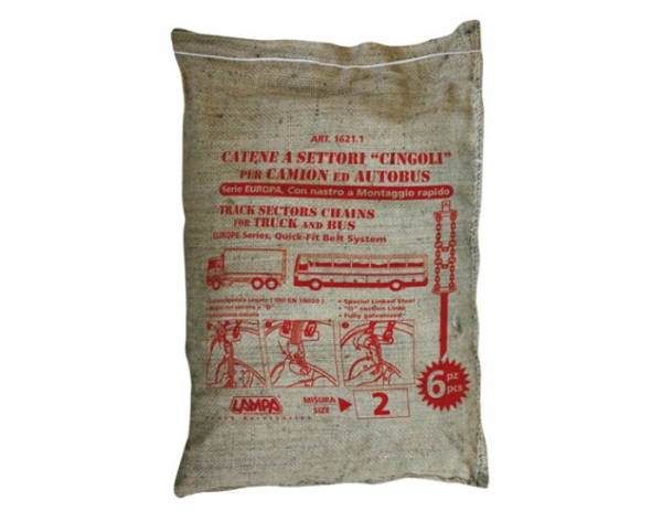 Αντιολισθητική αλυσίδα φορτηγού, ιταλικής προέλευσης, κατασκευασμένη από γαλβανιζέ σίδερο (ατσάλι, το οποίο έχει προστατευτικό επίστρωμα ψευδαργύρου, που προστατεύει το ατσάλι από την οξείδωση), με εύκολη τοποθέτηση.