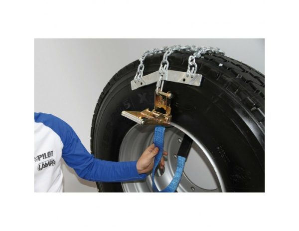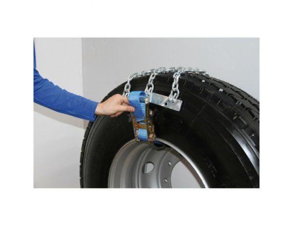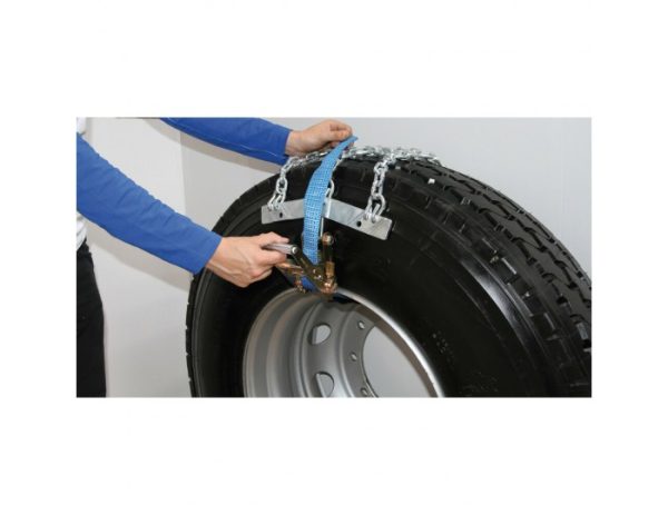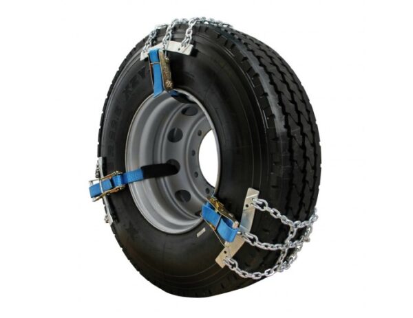 Διαθέτει 3 κάθετες σειρές και 2 οριζόντιες από αλυσίδα σε σχήμα “D” με ενισχυμένους σταυρωτούς συνδέσμους και ιμάντα δέσης με καστάνια που προσαρμόζεται εύκολα και γρήγορα πάνω στον τροχό.
