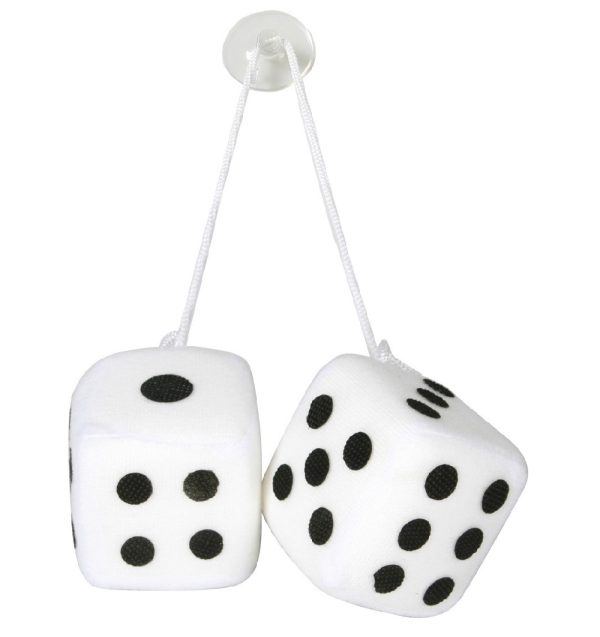 Ζάρια δύο τεμαχίων με διάσταση 7x7cm σε λευκό χρώμα με μαύρες λεπτομέρειες από αφρώδες υλικό, κατάλληλα για την εσωτερική διακόσμηση του οχήματός σας.