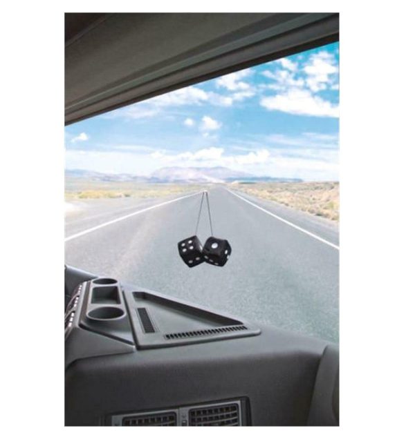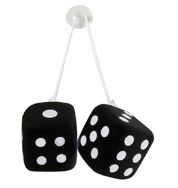 Ζάρια δύο τεμαχίων με διάσταση 7x7cm σε μαύρο χρώμα με λευκές λεπτομέρειες από αφρώδες υλικό, κατάλληλα για την εσωτερική διακόσμηση του οχήματός σας.