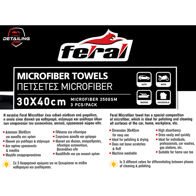 ΠΕΤΣΕΤΑ MICROFIBER DETAILING PRO FERAL 30x40cm 3 ΤΕΜΑΧΙΑ